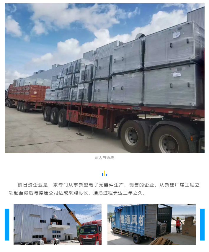 日前,德通風(fēng)機(jī)正分批送達(dá)廣東江門某日資企業(yè),主要用于該企業(yè)新建廠房建筑通風(fēng)及崗位功能用途,整批訂貨量達(dá)200多臺(tái)。