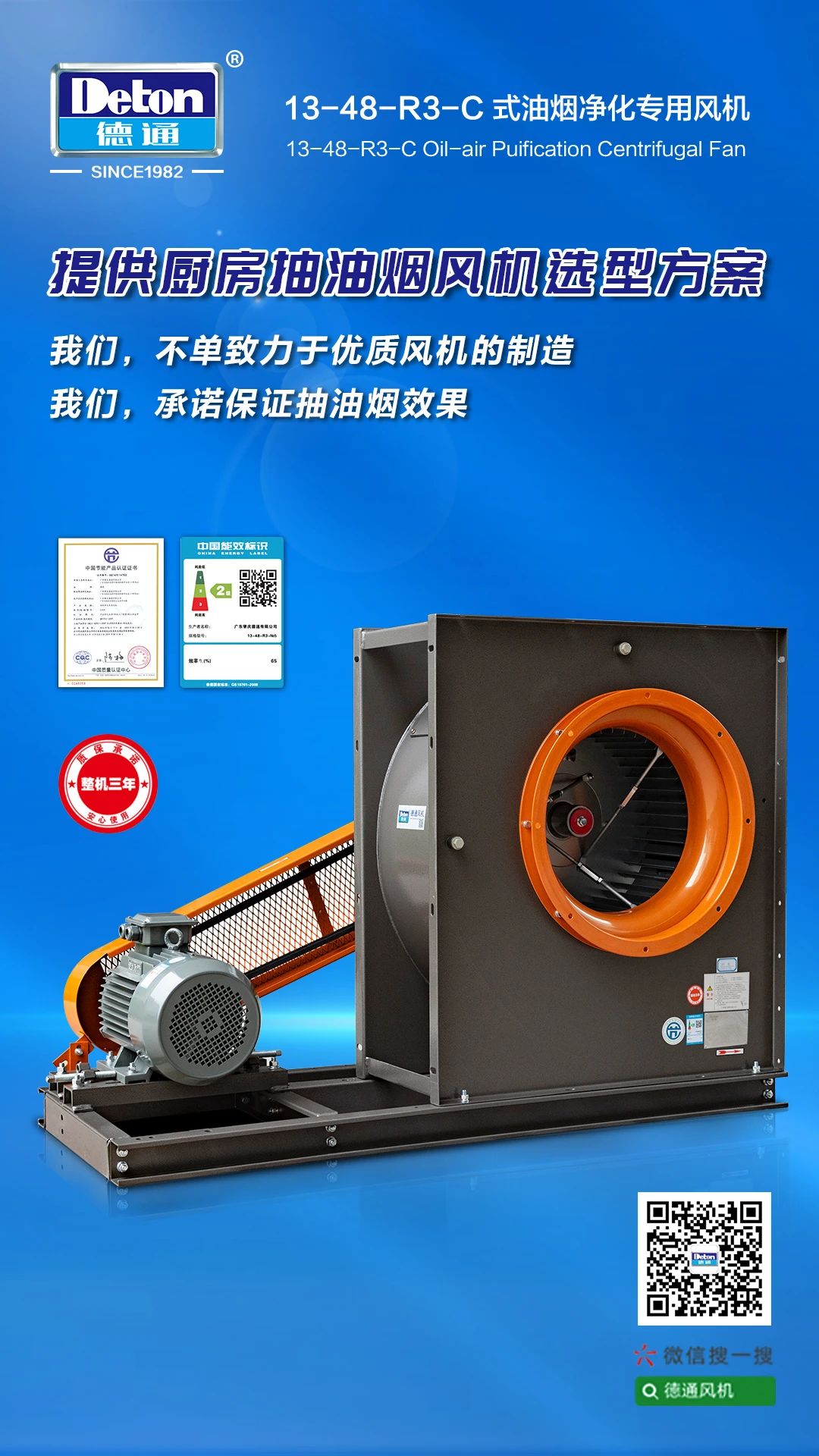 德通風機 優選產品 | 13-48-R3-C式油煙凈化專用風機