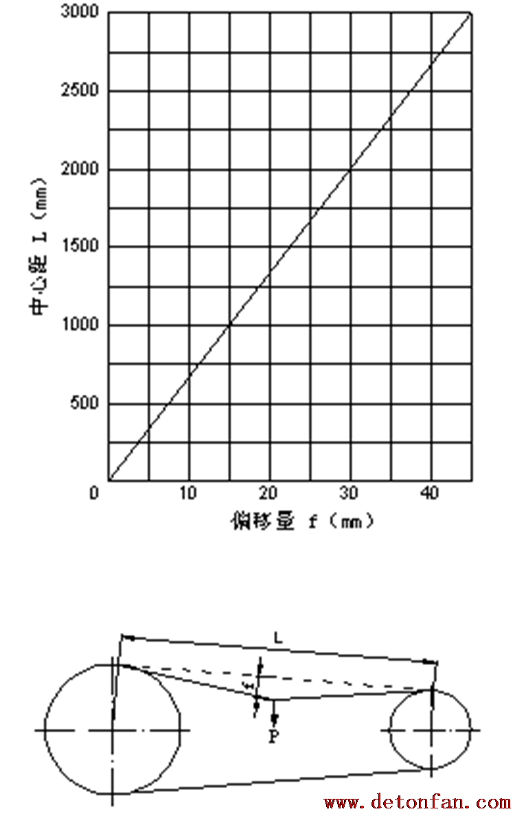 ③調(diào)整三角皮帶張緊力時,可按(圖3)所示,在皮帶中央施加規(guī)定張力P,根據(jù)皮帶的偏移量f來判定其松緊程度。張力P及偏移量f的數(shù)據(jù)可參考(表2)和(表3)的推薦值。